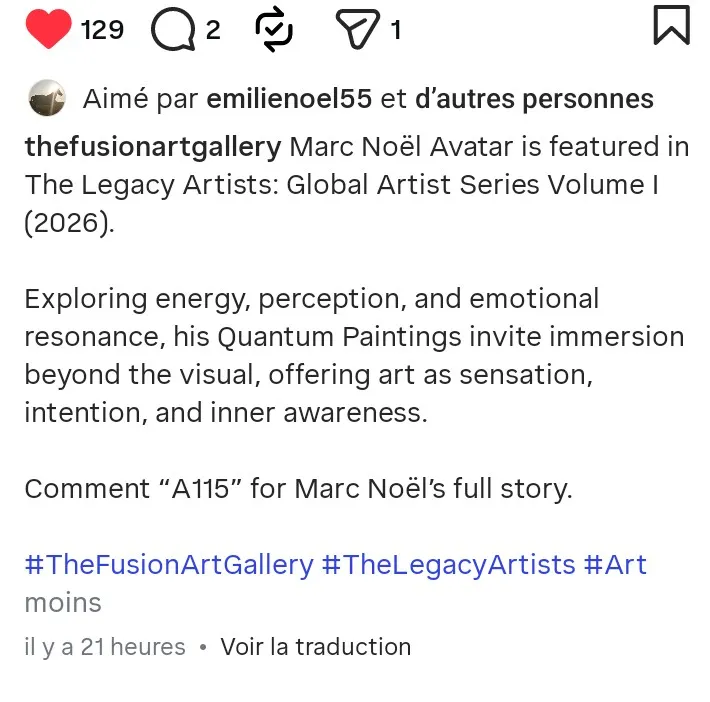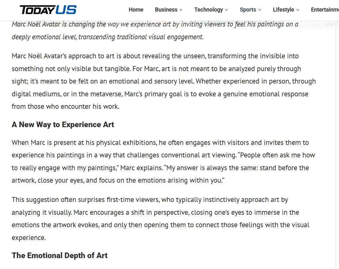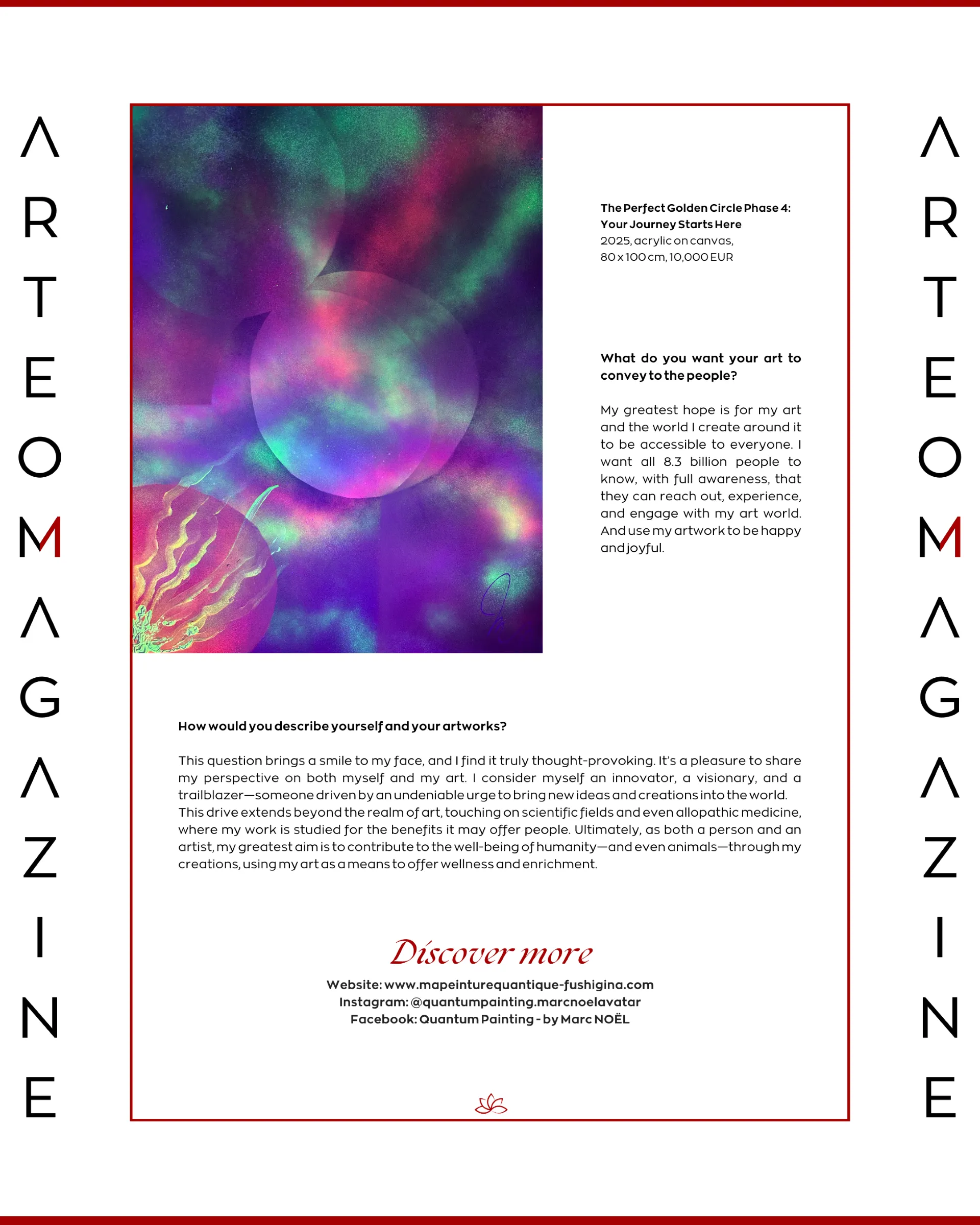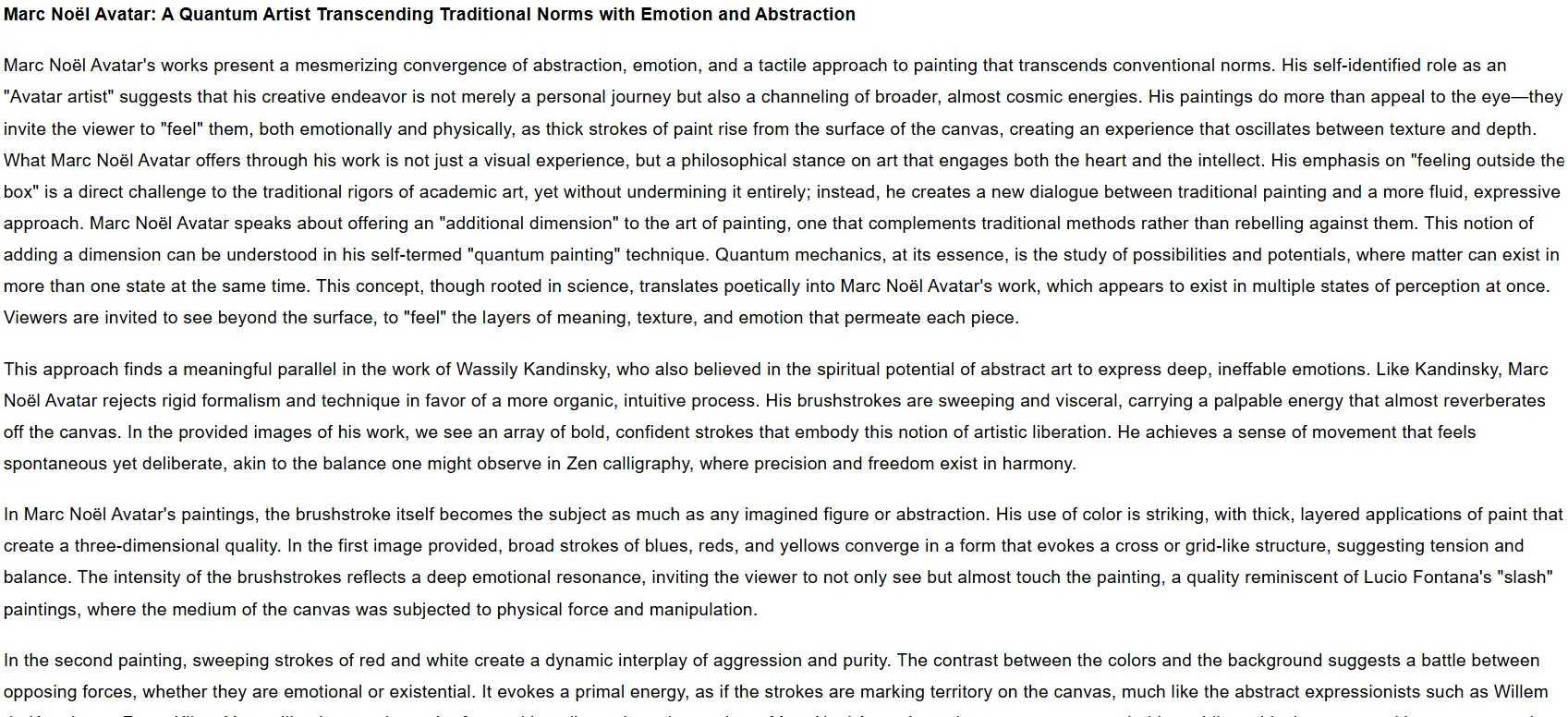in this world from different viewpoints and in different forms but complementary to what the ego’s perception of reality is. In all his forms, and here in this biography more specifically as an artist painter, Marc Noël has the desire and the need to share with the world through his artistic creations something that is completely “out of the norm”, but where nevertheless the person who permits himself, and who dares to enter into the artistic creations presented by Marc Noël, will have the opportunity to discover another dimension.