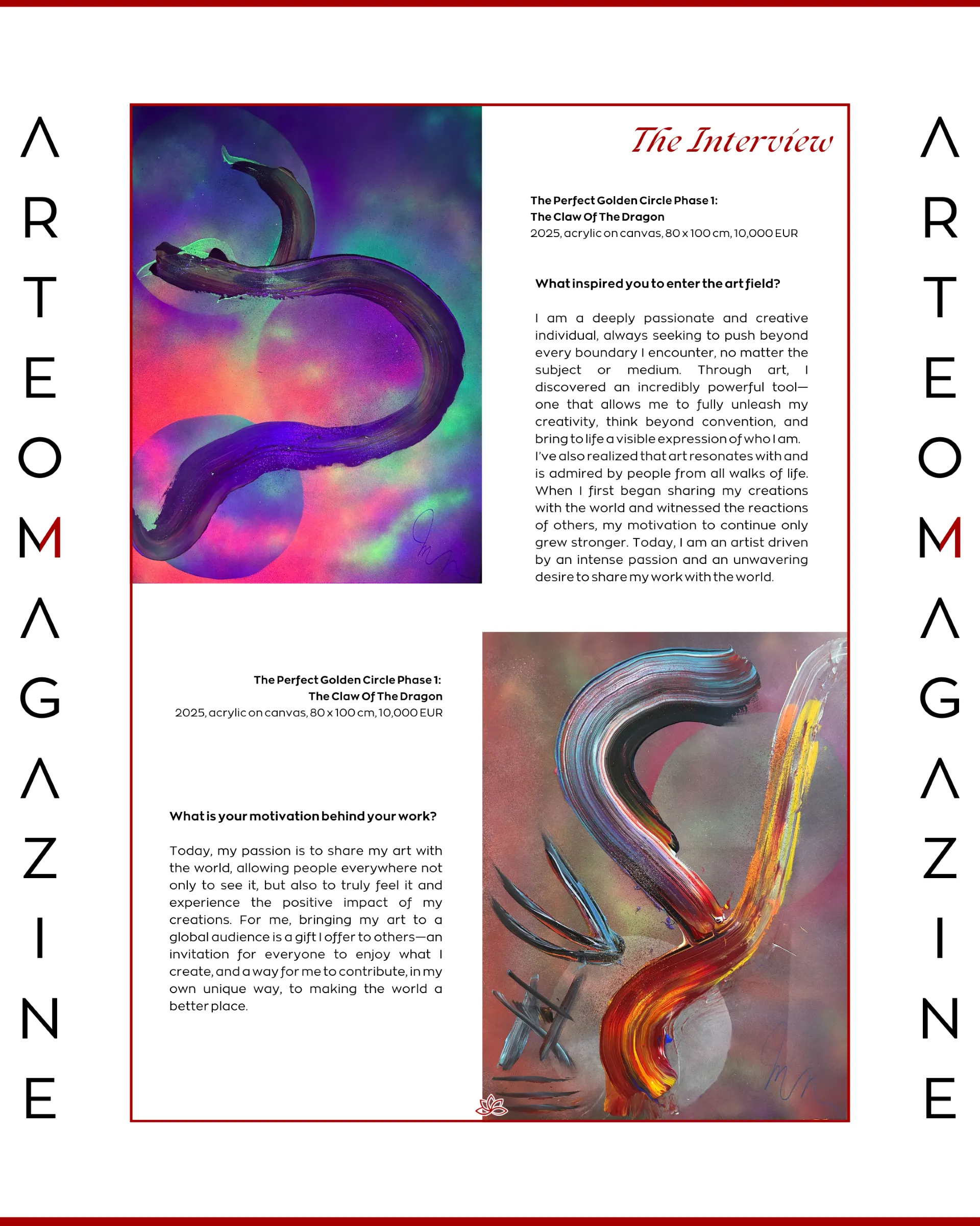 "I found your profile on YouTube and I was very impressed by your art technique, and then I checked for your website, where I analyzed your biography and all your artworks, according to the historical-artistic criteria of quality, originality and uniqueness of the works. "